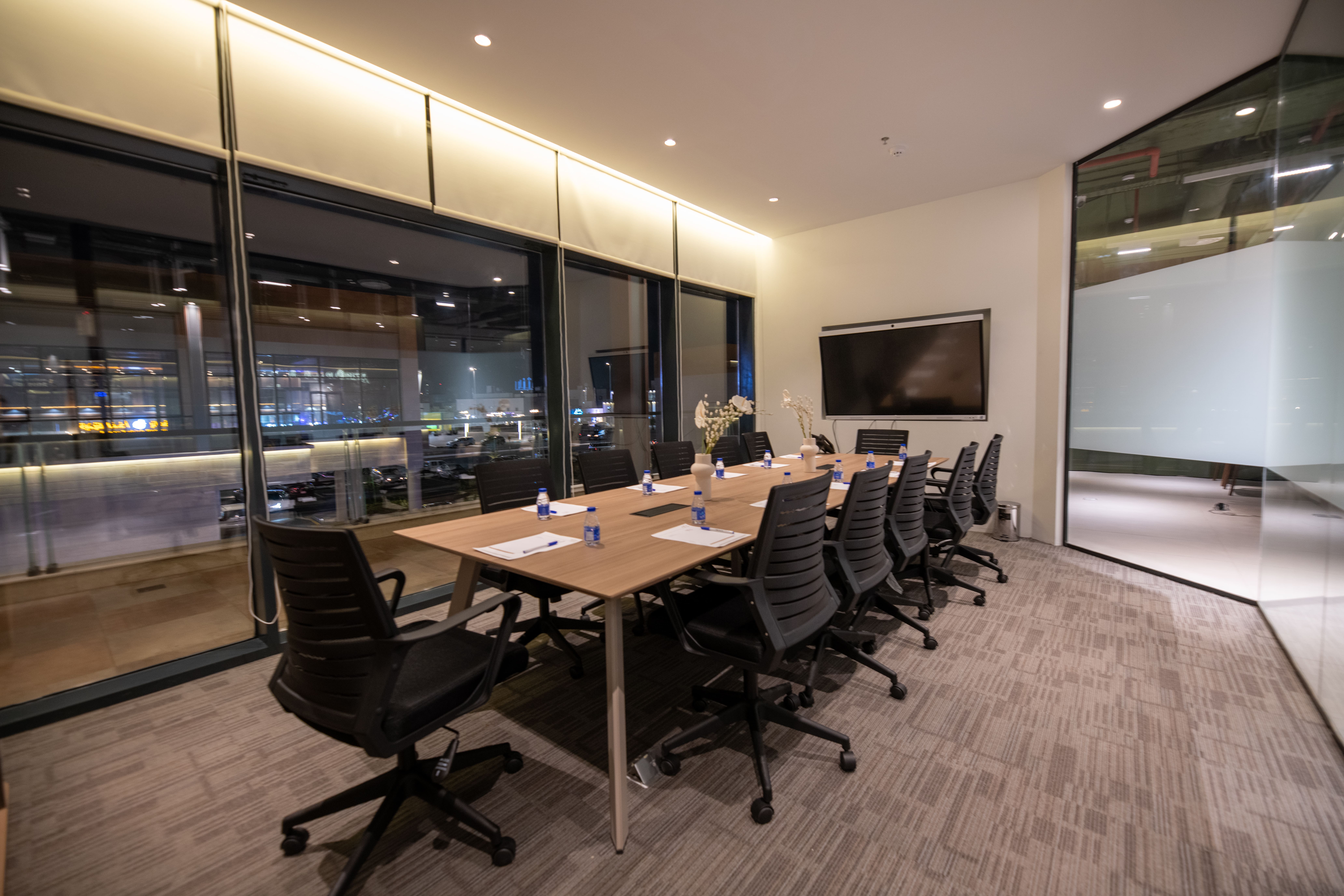 إطلالة واسعة على المجمع، أثاث مودرن أنيق، وأحدث الأجهزة بما فيها شاشة عرض تفاعلية… كل شيء مُعد لتجربة اجتماعات غير عادية! سواء كانت جلسات عصف ذهني، عروض تقديمية، أو نقاشات استراتيجية، هذه القاعة تمنحك بيئة محفزة للإبداع والتركيز.